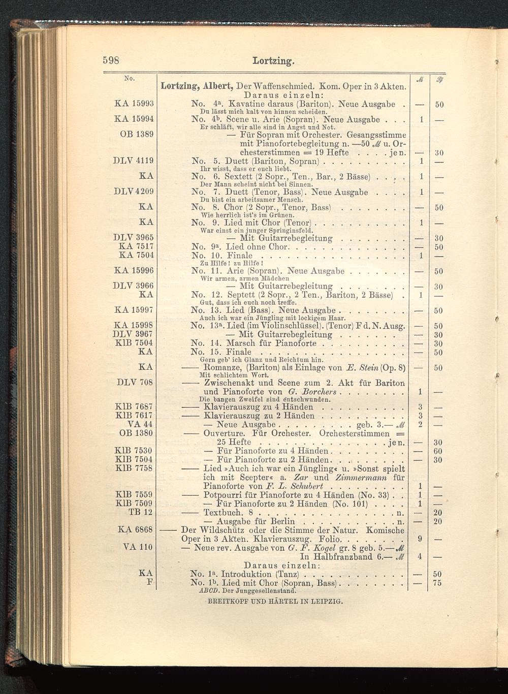 Lortzing, Albert , Der Waffenschmied. Kom. Oper in 3 Akten.Daraus einzeln:No. 4 a . Kavatine daraus (Bariton). Neue Ausgabe .Du lässt mich kalt von hinnen scheiden.