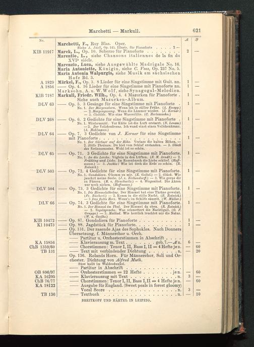 Marenzio, Luca, siehe Ausgewählte Madrigale No. 16.Maria Antoniette, Königin, siehe C. Voss, Op. 237 No. 5.Maria Antonia Walpurgis, siehe Musik am sächsischenHofe Bd. 3.