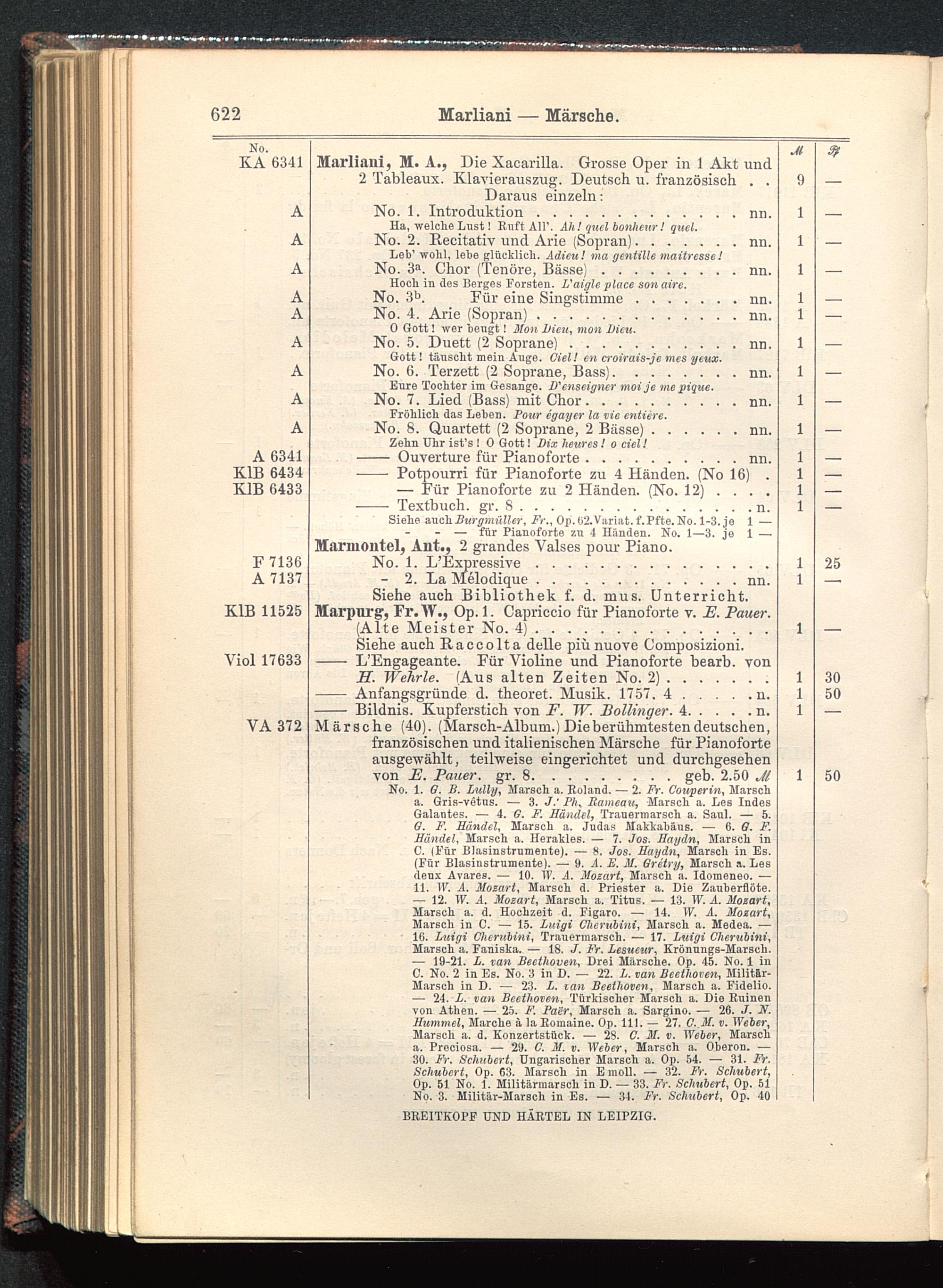 No. 1. G. B. Lully, Marsch a. Roland. — 2. Fr. Couperin, Marscha. Gris-vetus. — 3. J.' PJk Jiameau, Marsch a. Les IndesGalantes. — 4. G. F. Händel, Trauermarsch a. Saul. — 5.0. F. Händel, Marsch a. Judas Makkabäus. — 6. 6. F.Händel, Marsch a. Herakles. — 7. Jos. Haydn, Marsch inC. (Für Blasinstrumente). — X. Jos. Haydn, Marsch in Es.(Für Blasinstrumente). — 9. A. E. M. Gretry, Marsch a. Lesdenx Avares. — 10. IV. A. Mozart, Marsch a. Idomeneo. —11. ir. A. Mozart, Marsch d. Priester a. Die Zauberflöte.