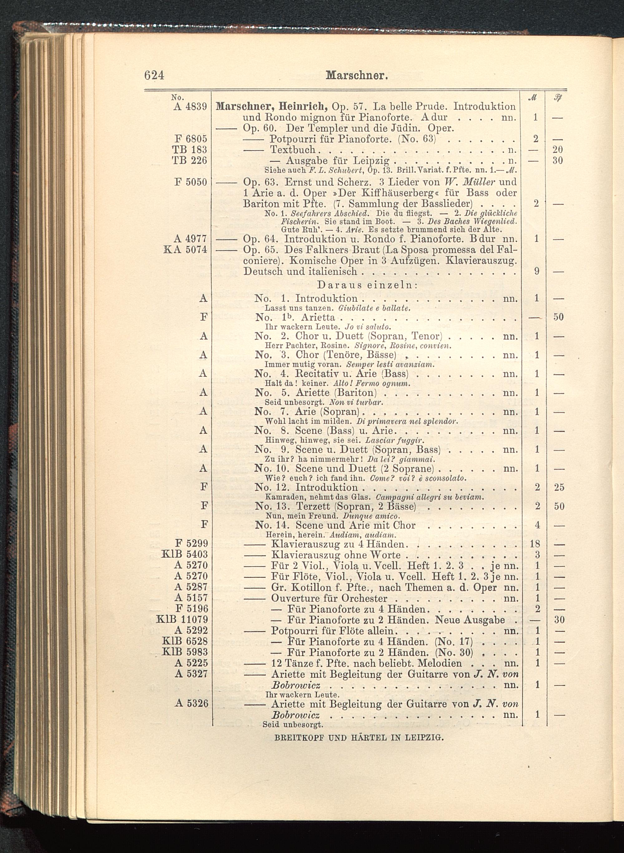 1 Arie a. d. Oper »Der Kiffhäuserberg« für Bass oderBariton mit Pfte. (7. Sammlung der Basslieder) ....No. 1. Seefahrers Abschied. Die du fliegst. — 2. Die glücklicheFischerin. Sie stand im Boot. — 3. Des Baches Wiegenlied.Gute Rull'. — 4. Arie. Es setzte brummend sich der Alte.