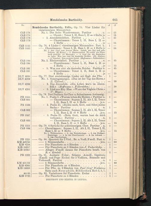 Mendelssohn Bartholdy, Felix , Op. 75. Vier Lieder fürvierstimmigen Männerchor.