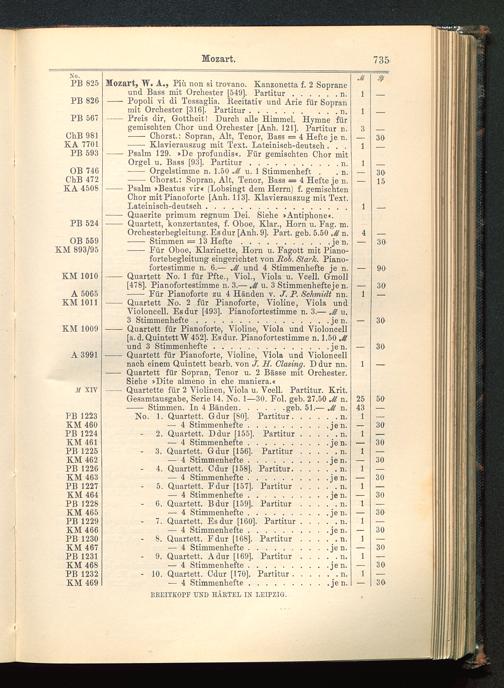 - Für Oboe, Klarinette, Horn u. Fagott mit Piano-fortebegleitung eingerichtet von Mob. Stark. Piano-fortestimme n. 6.— Jl und 4 Stimmenhefte je n.--Quartett No. 1 für Pfte., Viol., Viola u. Vcell. Gmoll