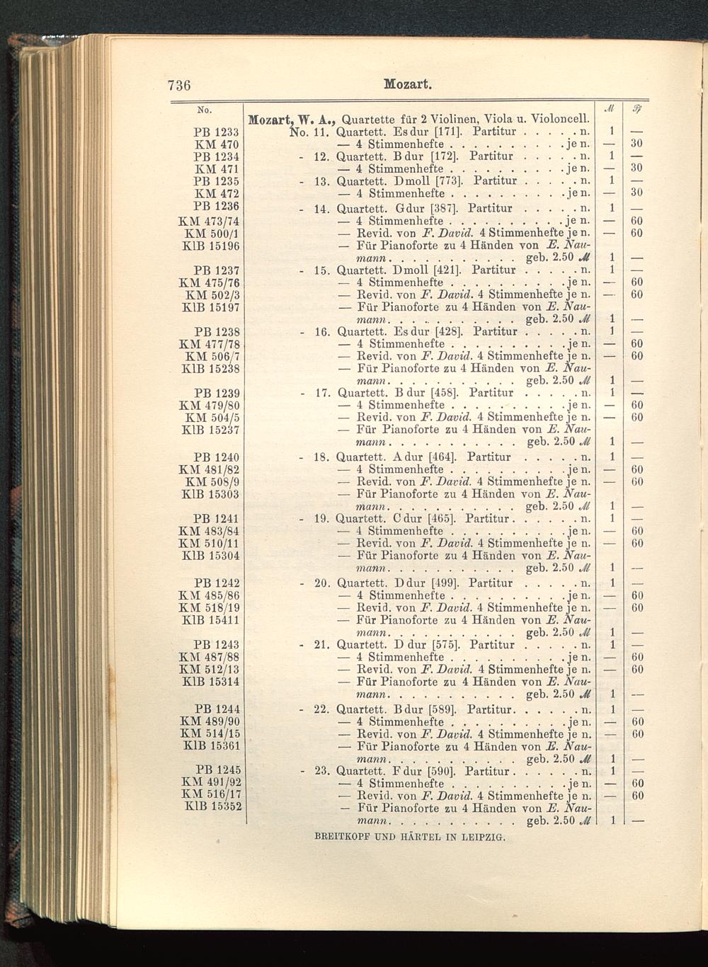 — Revid. von F. David. 4 Stimmenhefte je n.■— Für Pianoforte zu 4 Händen von F. Nau-mann........... geb. 2.50 Jl