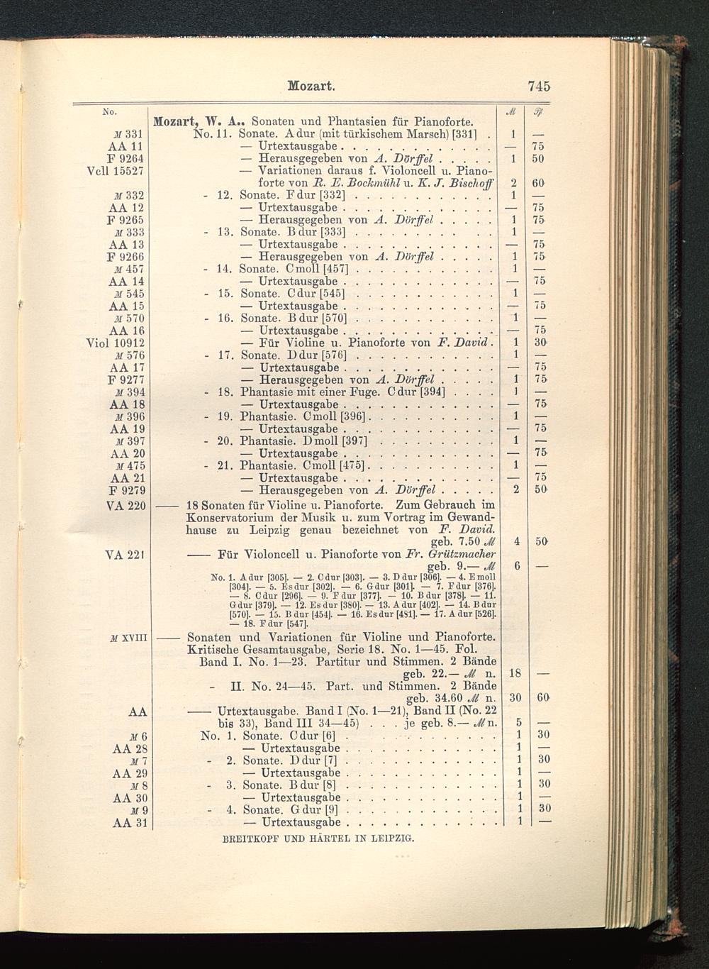 Mozart, W. A.. Sonaten und Phantasien für Pianoforte.