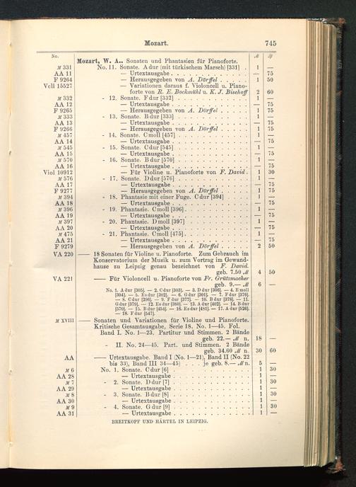 Sonaten und Variationen für Violine und Pianoforte.Kritische Gesamtausgabe, Serie 18. No. 1—45. Fol.Band I. No. 1—23. Partitur und Stimmen. 2 Bände