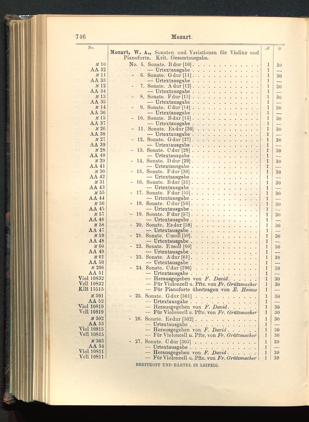 ,rt, W. A., Sonaten und Variationen für Violine undPianoforte. Krit. Gesamtausgabe.
