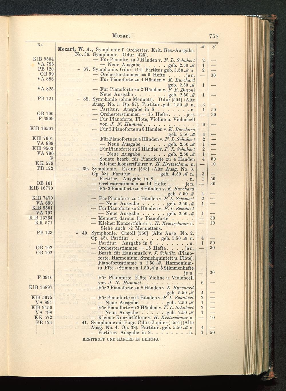 - 37. Symphonie. Gdur[444]. Partitur geb. 3.50 Jl n.