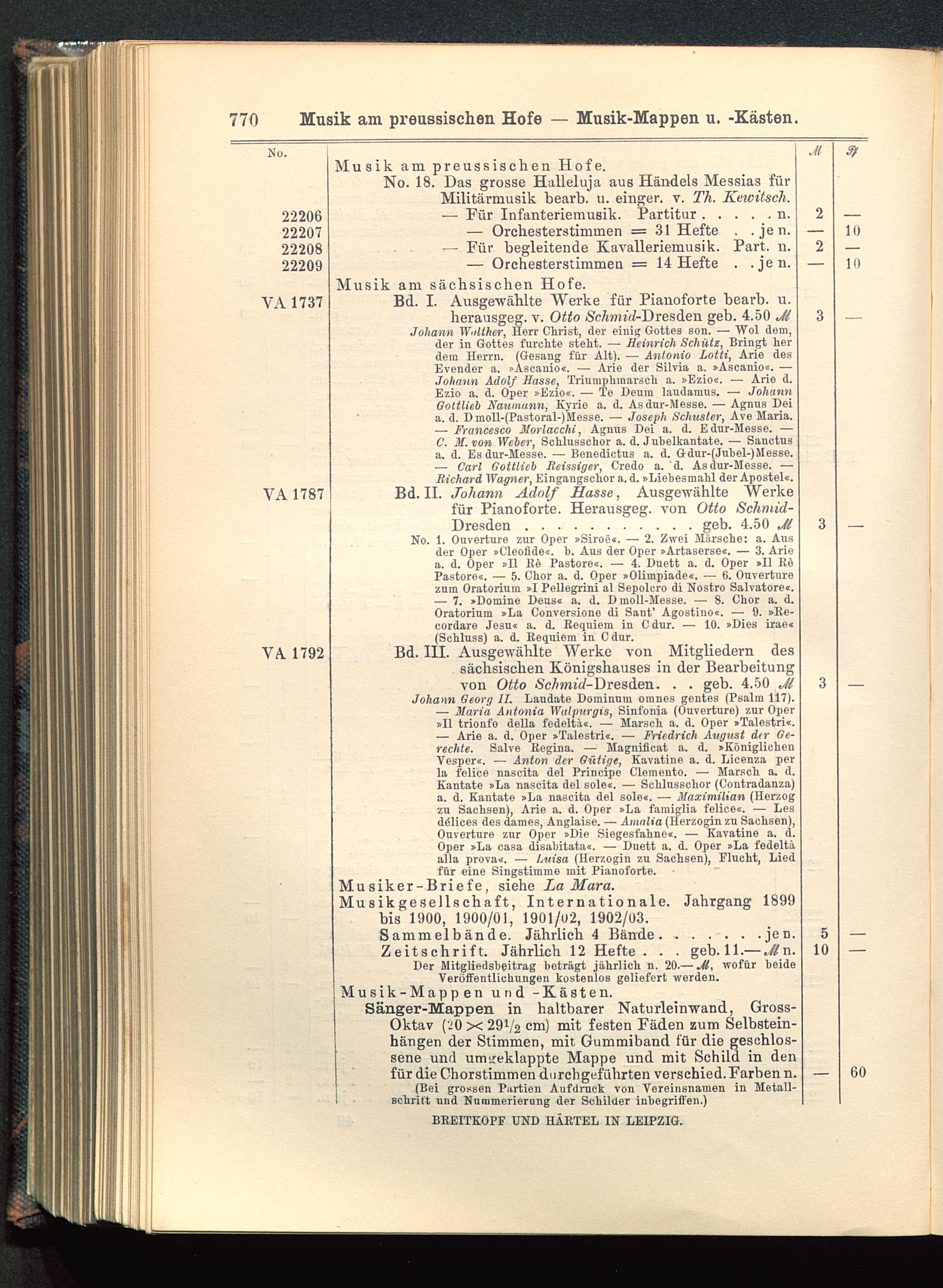 Bd. I. Ausgewählte Werke für Pianoforte bearb. u.herausgeg. v. Otto &/i»uV/-Dresden geb. 4.50 JlJohann WMher, Herr Christ, der einig Gottes son. — Wol dem,der in Gottes furchte steht. — Heinrich Schütz , Bringt herdem Herrn. (Gesang für Alt). — Antonio Lotti , Arie desEvender a. »Ascanio«. — Arie der Silvia a. »Ascanio «. —Johann Adolf Hasse, Triumphinarsch a. »Ezio«. — Arie d.Ezio a. d. Oper »Ezio«. — Te Deum laudaraus. — JohannGottlieb Naumann, Kyrie a. d. Asdnr-Messe. — Agnus Dei a. d. Dmoll-(Pastoral-)Messe. — Joseph Schuster , Ave Maria.