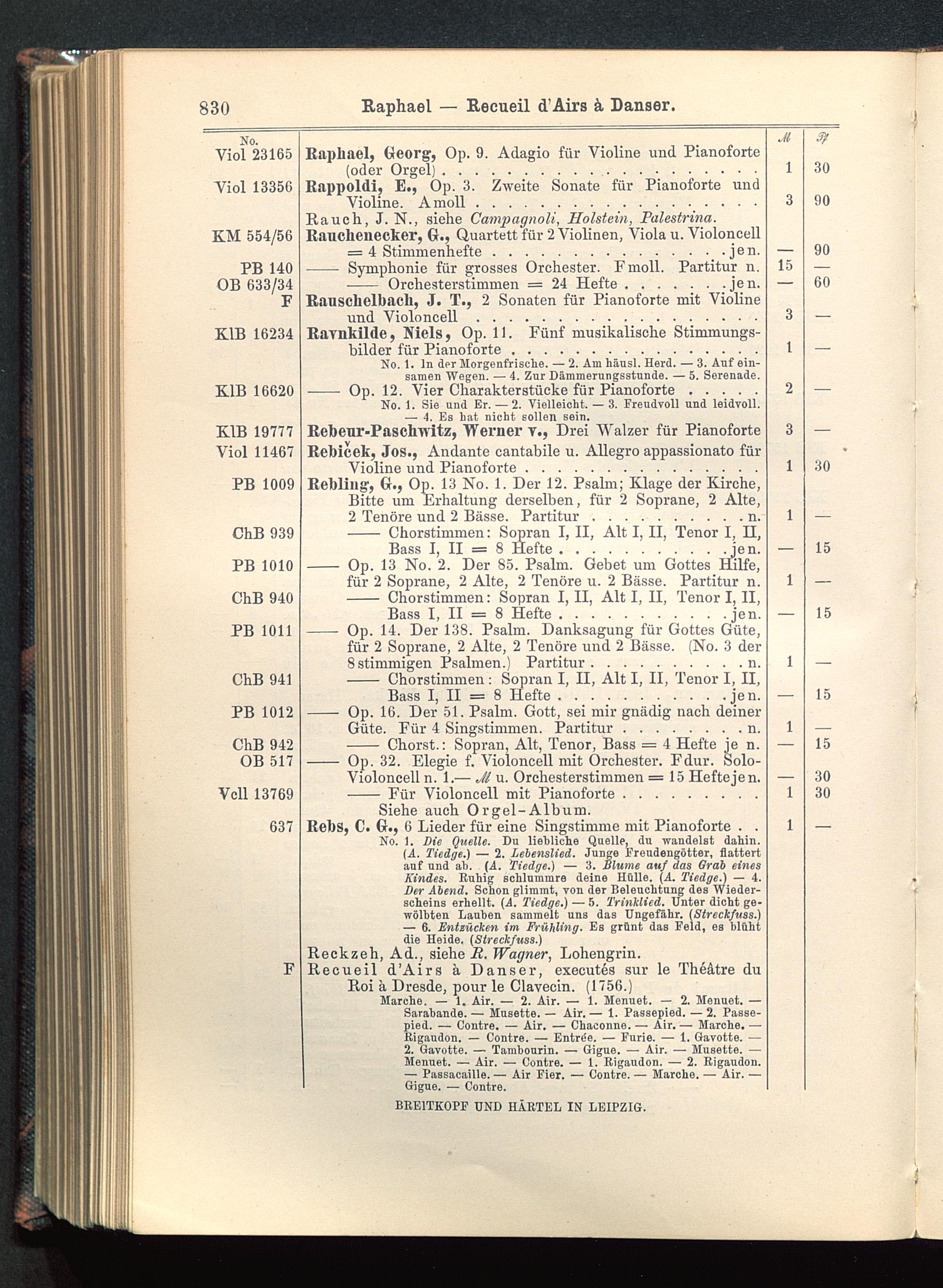 Raphael, Georg, Op. 9. Adagio für Violine und Pianoforte(oder Orgel)....................
