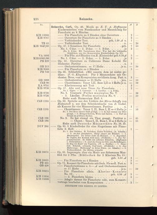 Reinecke, Carl, Op. 46. Musik zu E. T. A. HoffmannsKindermärchen vom Nussknacker und Mausekönig fürPianoforte zu '4 Händen.