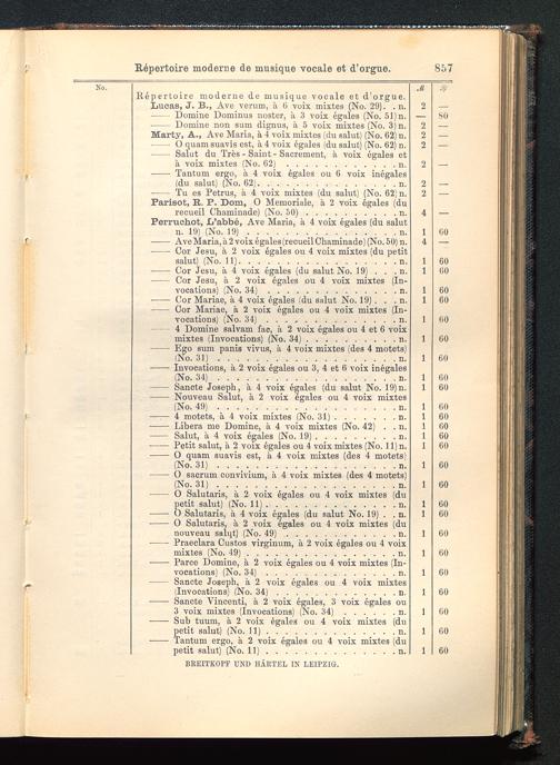 Repertoire moderne de musique vocale et d'orgue.