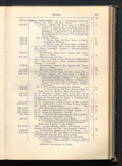 — Chorst.: Sopr., Alt, Tenor, Bass = 4 Hefte je- Op. 16. Der 116. Psalm. »Das ist mir lieb« für Sopran-Solo, Chor u. Orchester. Partitur u. Orchesterstimmenin Abschrift.