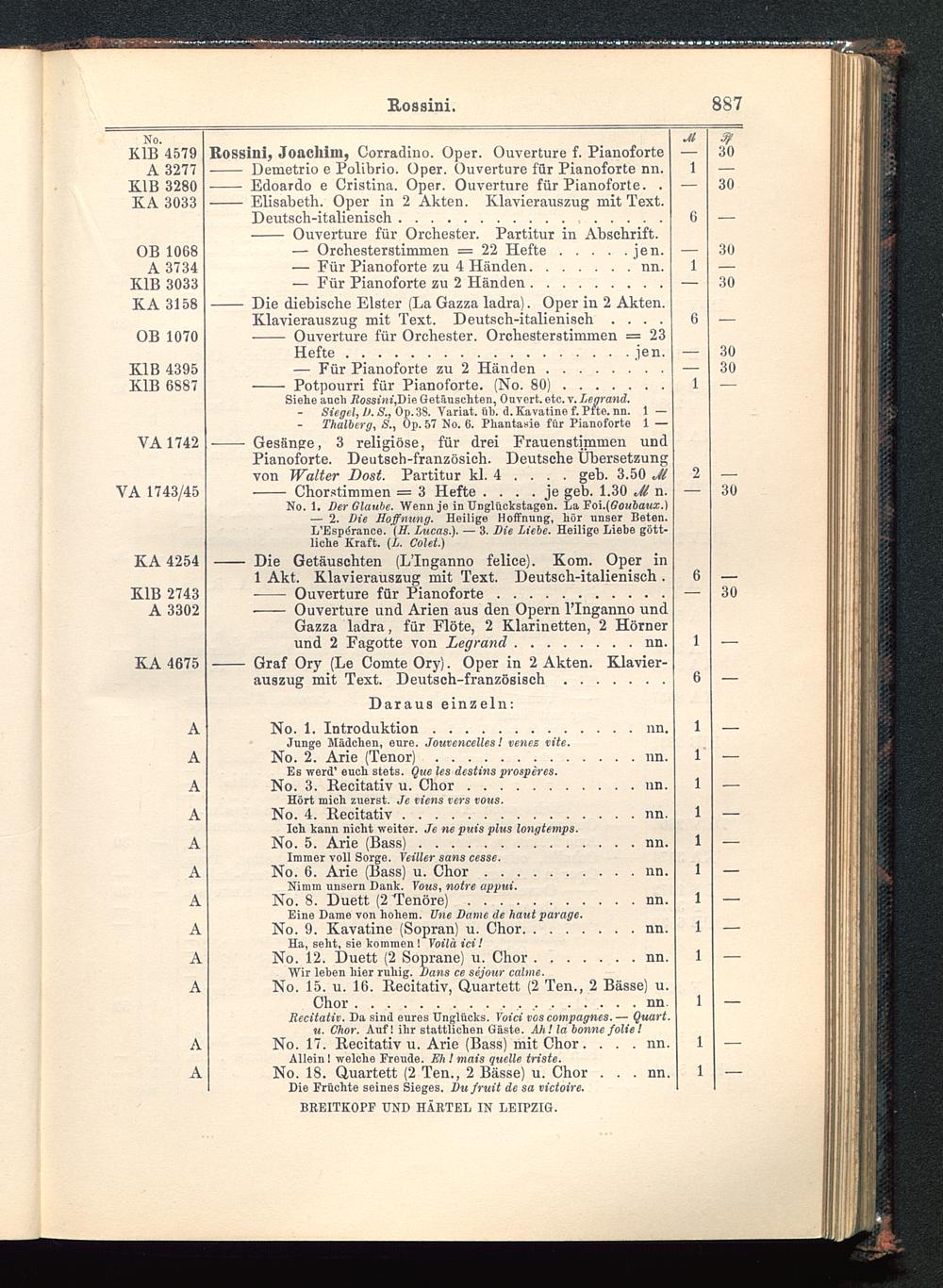 — Die diebische Elster (La Gazza ladra ). Oper in 2 Akten.Klavierauszug mit Text. Deutsch -italienisch ....- Ouvertüre für Orchester. Orchesterstimmen = 23
