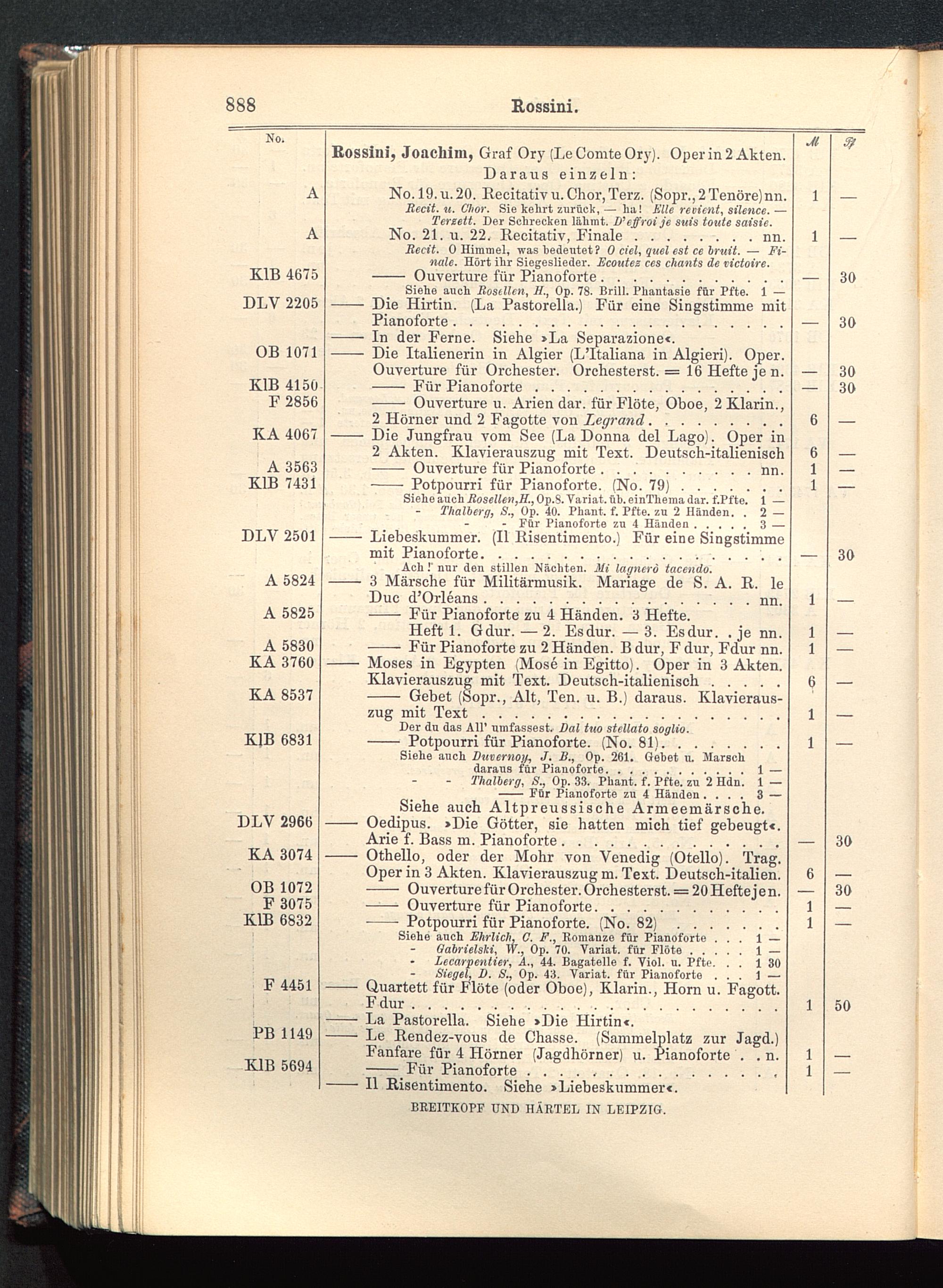 Bossini, Joachim, Graf Ory (LeComteOry). Oper in 2 Akten.Daraus einzeln: