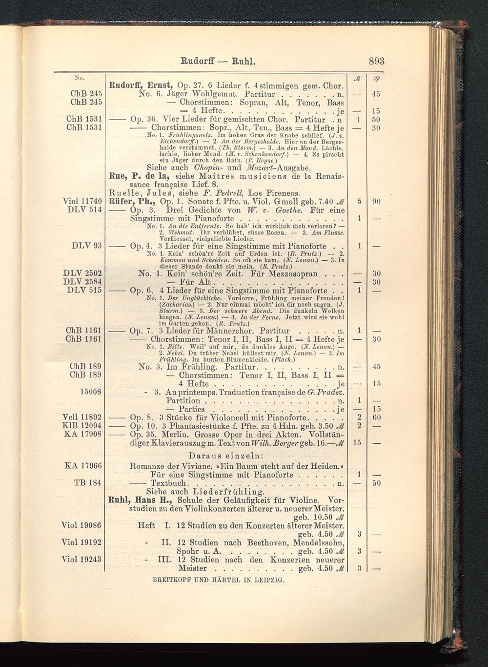Siehe auch Liederfrühling.Rnhl, Hans H., Schule der Geläufigkeit für Violine. Vor-studien zu den Violinkonzerten älterer u. neuerer Meister.