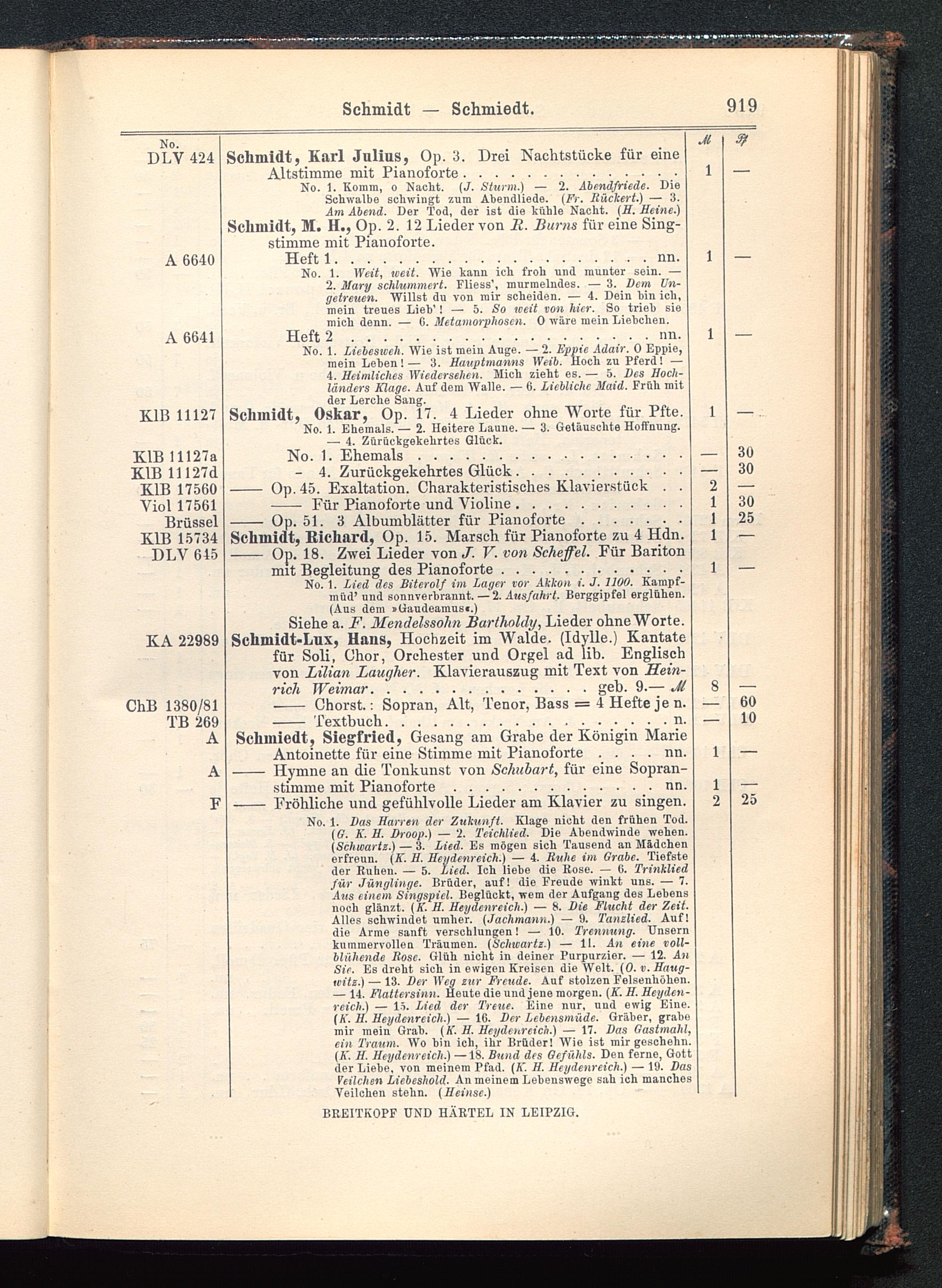 Schmidt-Lux, Hans, Hochzeit im Walde. (Idylle.) Kantatefür Soli, Chor, Orchester und Orgel ad lib. Englisch von Lilian Laugher. Klavierauszug mit Text von Hein-rich Weimar.............. geb. 9.— Jl