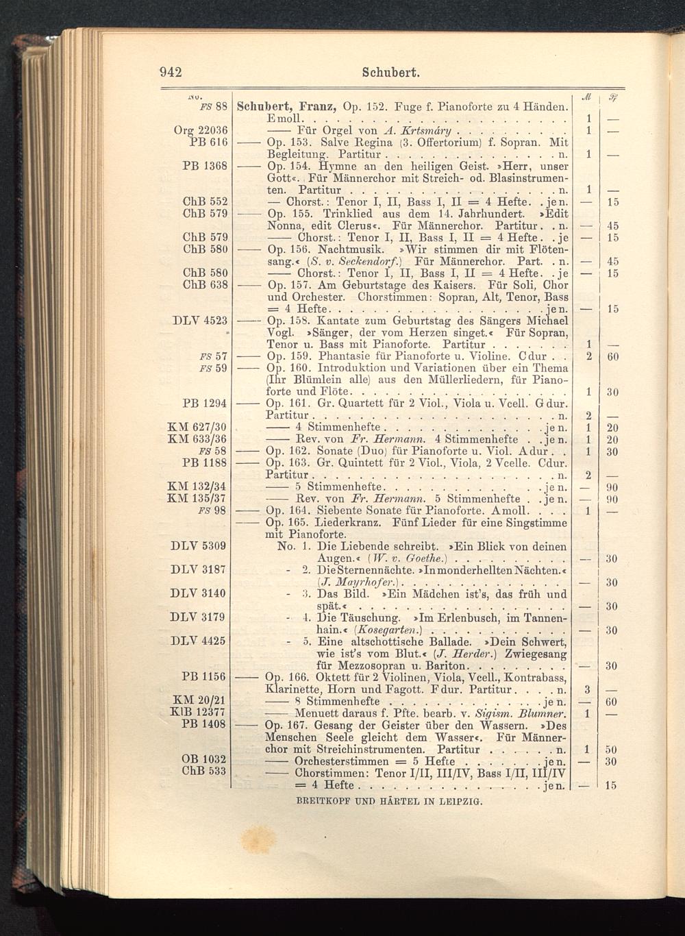 - Op. 161. Gr. Quartett für 2 Viol., Viola u. Vcell. Gdur.