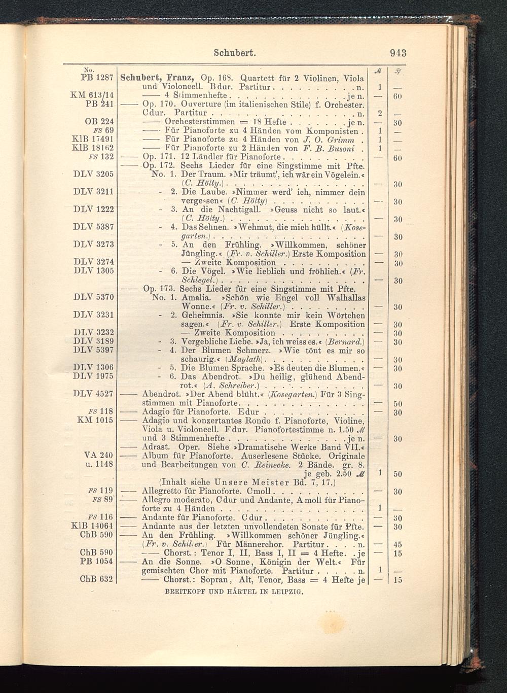 Schubert, Franz, Op. 168. Quartett für 2 Violinen, Viola