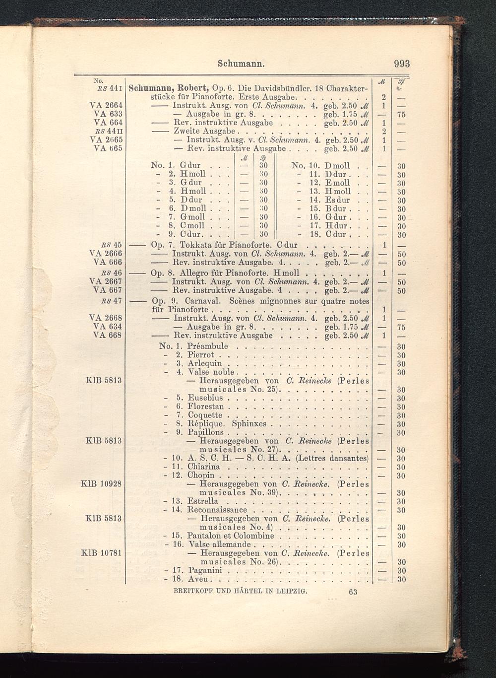 - Instrukt. Ausg. von Cl. Schumann. 4. geb. 2.50 Jl