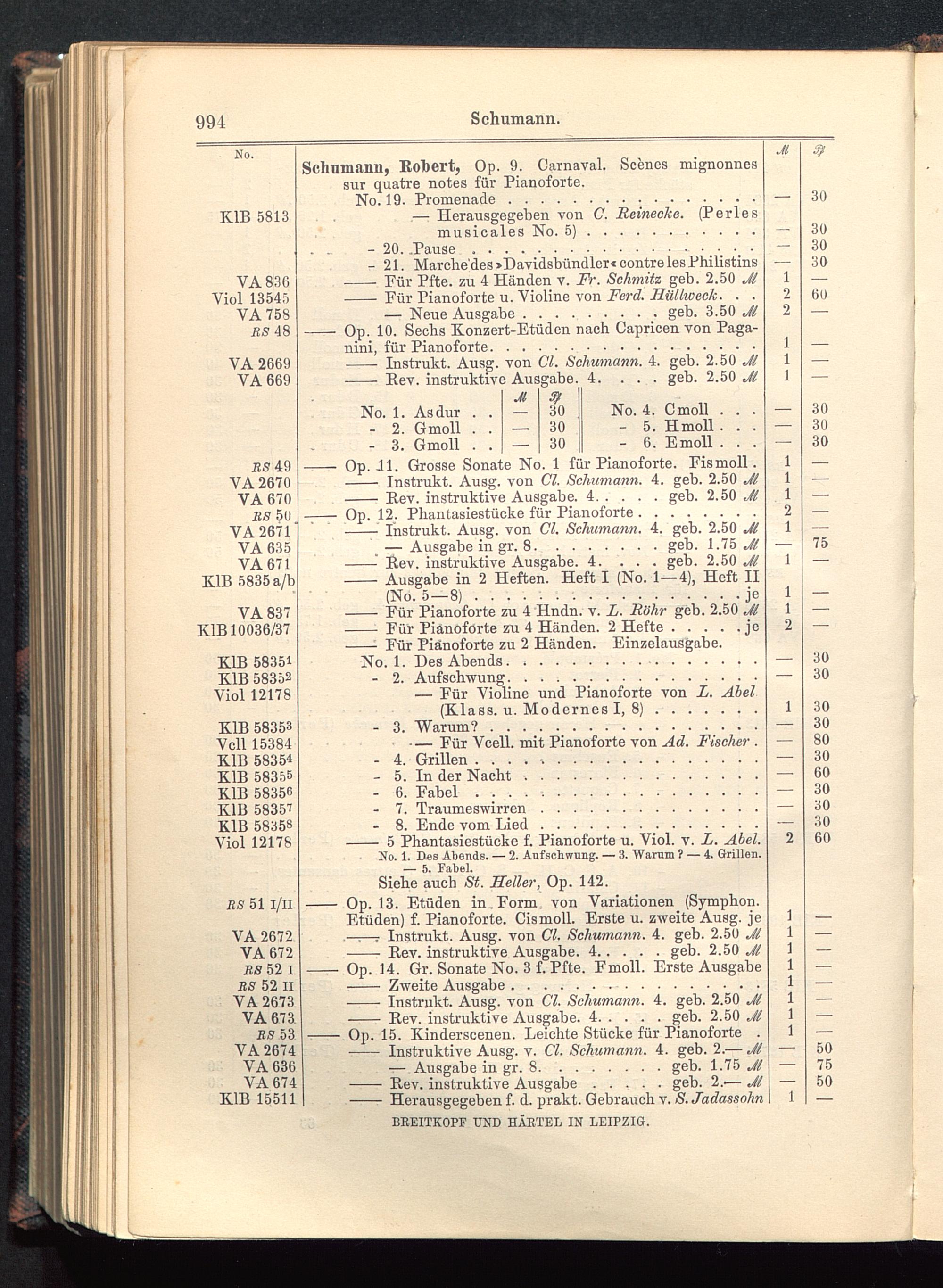 - Instrukt. Ausg. von Cl. Schumann. 4. geb. 2.50 Jl