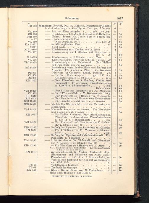 Schumann, Robert , Op.115. Manfred. Dramatisches Gedichtin drei Abteilungen v. Lord Byron . Part. geb. 7.50 Jln.