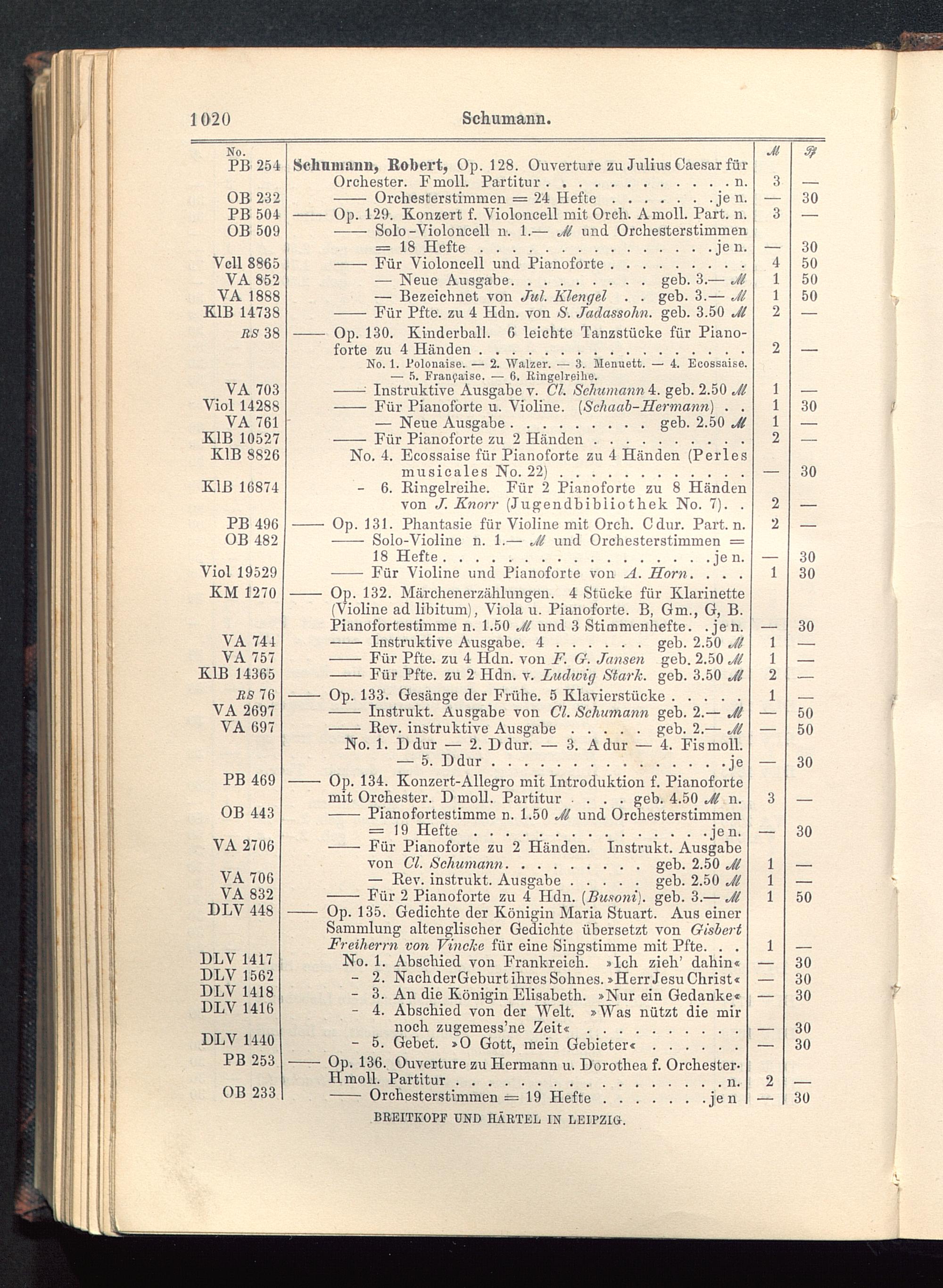 - Op. 129. Konzert f. Violoncell mit Orch. Amoll. Part. n.