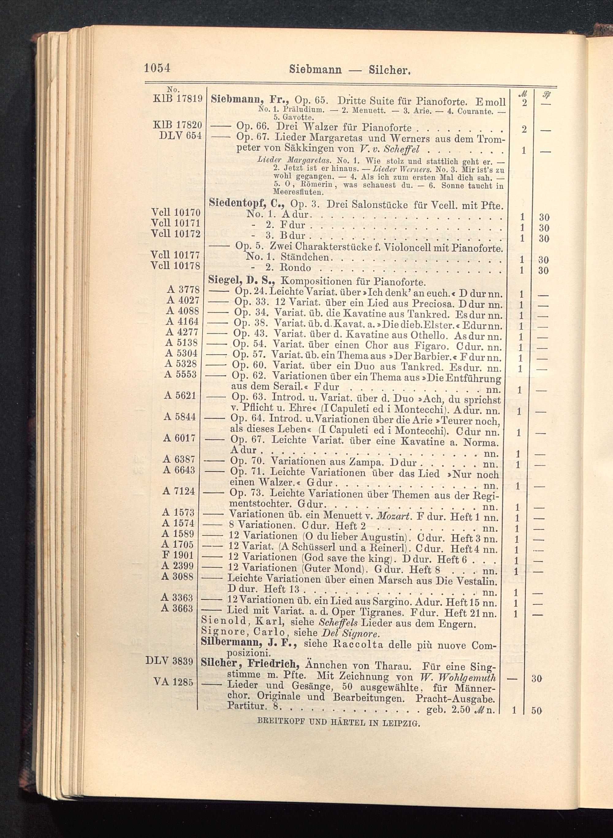 Sienold, Karl, siehe Scheffels Lieder aus dem Engern.Signore, Carlo, siehe Del Siynore.