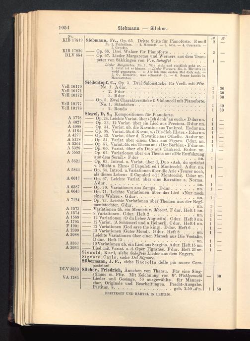 Siebmann, Fr., Op. 05. Dritte Suite für Pianoforte. EmollNo. 1. Präludium. — 2. Menuett. — 3. Arie. — 4. C'ourante. —5. Gavotte.