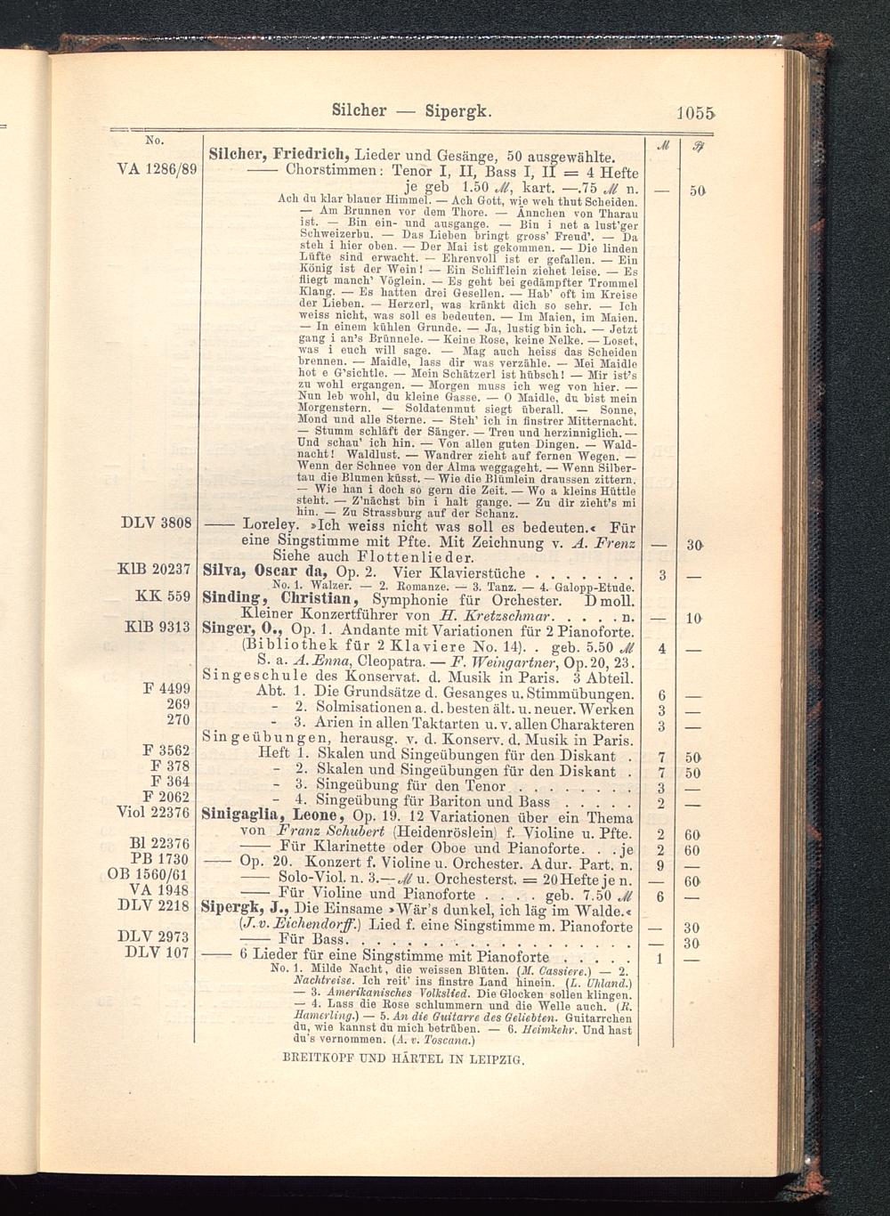 — Stumm schläft der Sänger. — Treu und herzinniglich. —Und schau' ich hin. ■— Von allen guten Dingen. — Wald-nacht ! Waldlust. — Wandrer zieht auf fernen Wegen. —Wenn der Schnee von der Alma weggageht. — Wenn Silber-tau die Blumen küsst. — Wie dio Blümlein draussen zittern.