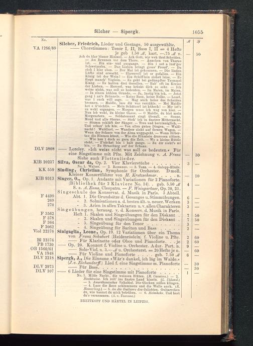 Singer, 0., Op. 1. Andante mit Variationen für 2 Pianoforte.(Bibliothek für 2 Klaviere No. 14). . geb. 5.50 JlS. a. A. JEnna, Cleopatra. — F. Weingartner , Op.20, 23.Singeschule des Konservat. d. Musik in Paris . 3 Abteil.Abt. 1. Die Grundsätze d. Gesanges u. Stimmübungen.