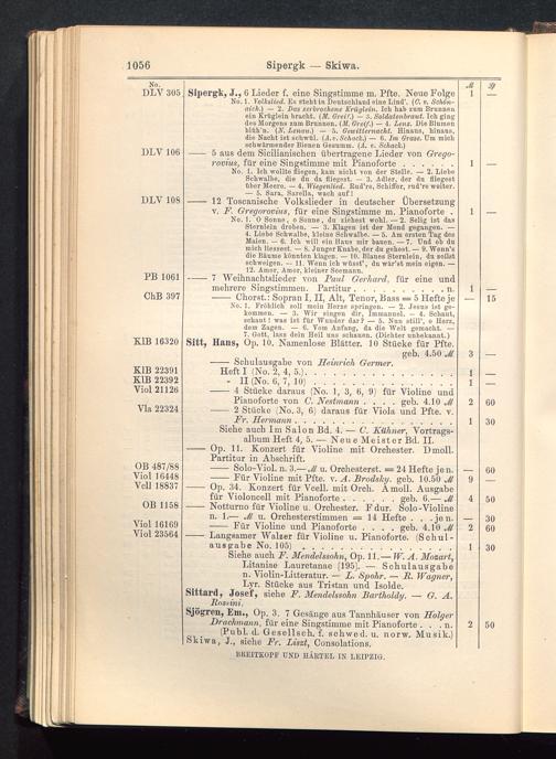 Siehe auch F. Mendelssohn , Op. 11. — W. A. Mozart,Litaniae Lauretanae [195]. — Schulausgaben. Violin-Litteratur. — L. Spohr. — R. Wagner ,Lyr. Stücke aus Tristan und Isolde .Sittard, Josef, siehe F. Mendelssohn Bartholdy . — G. A.Bossini.