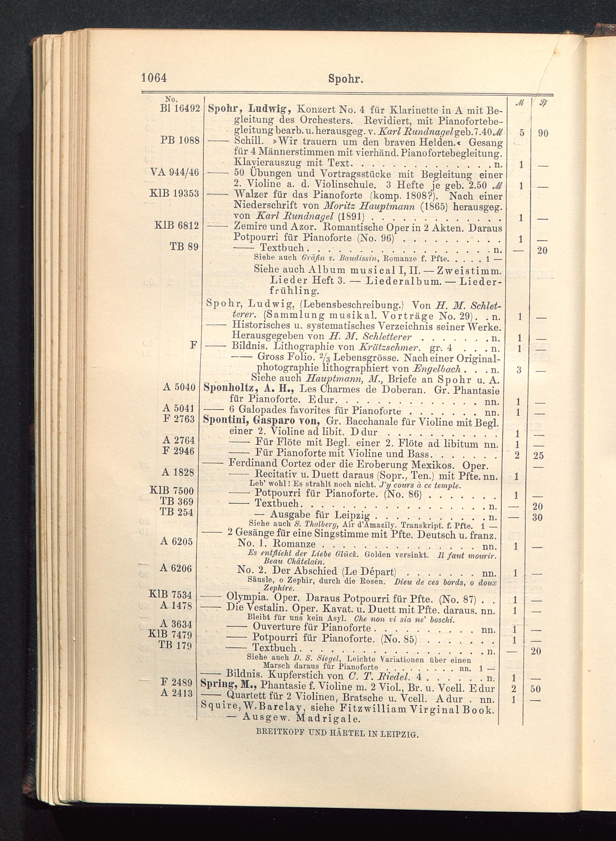 Spohr , Ludwig, (Lebensbeschreibung.) Von H. 31. Schlet-terer. (Sammlung musikal. Vorträge No. 29). . n.