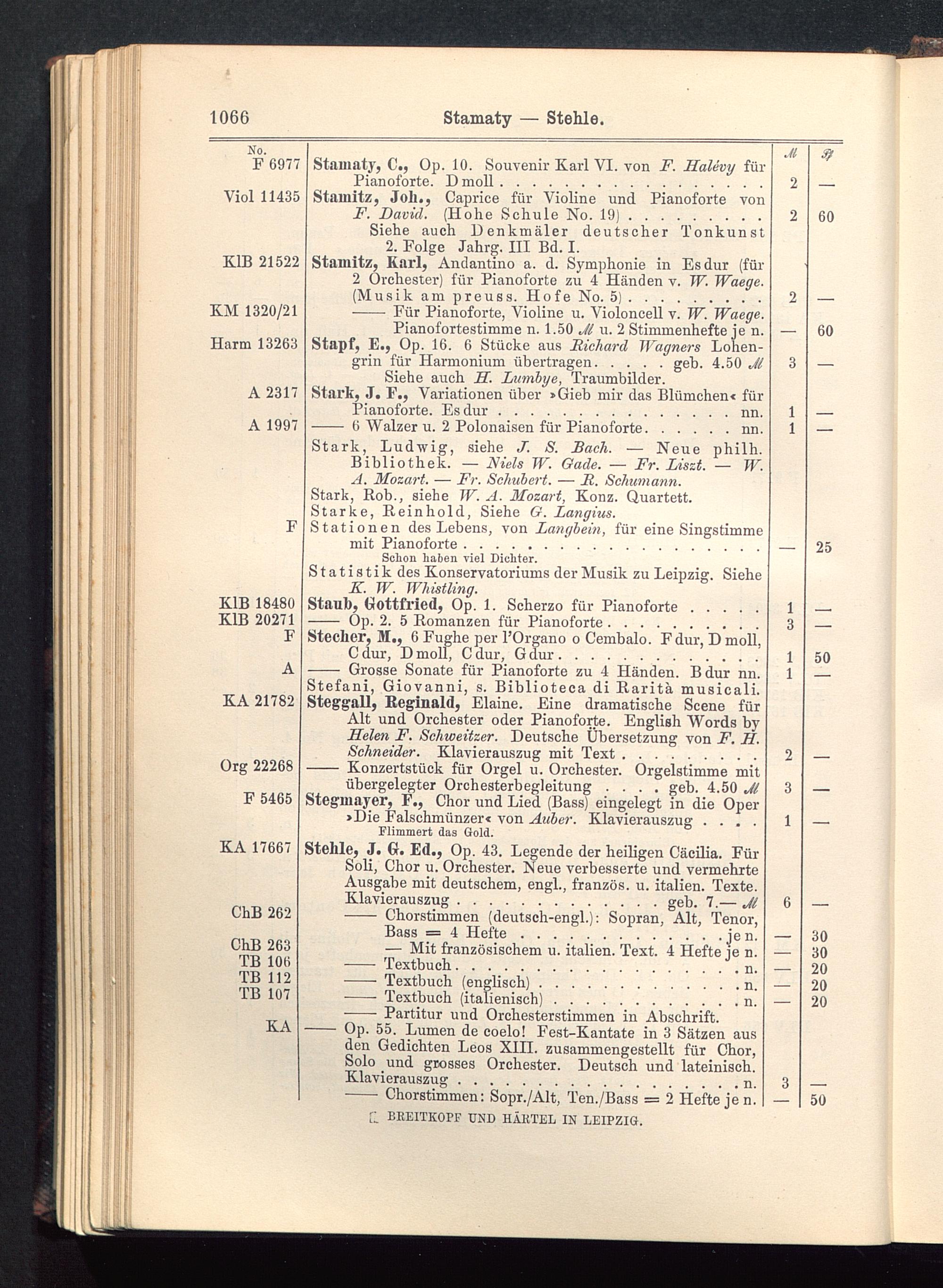 A. Mozart. — Fr. Schubert. — M. Schumann.Stark, Rob., siehe W. A. Mozart, Konz . Quartett.Starke, Beinhold, Siehe G. Langius.Stationen des Lebens, von Langbein, für eine Singstimme
