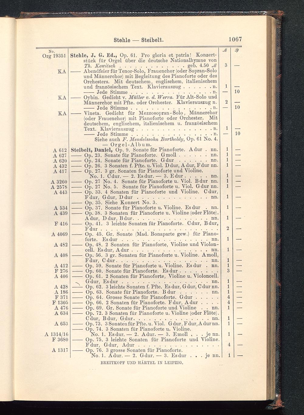 Stehle, J. G. Ed., Op. 61. Pro gloria et patria! Konzert-stück für Orgel über die deutsche Nationalhymne vonTh. Kewitsch............. geb. 4.50 Jl