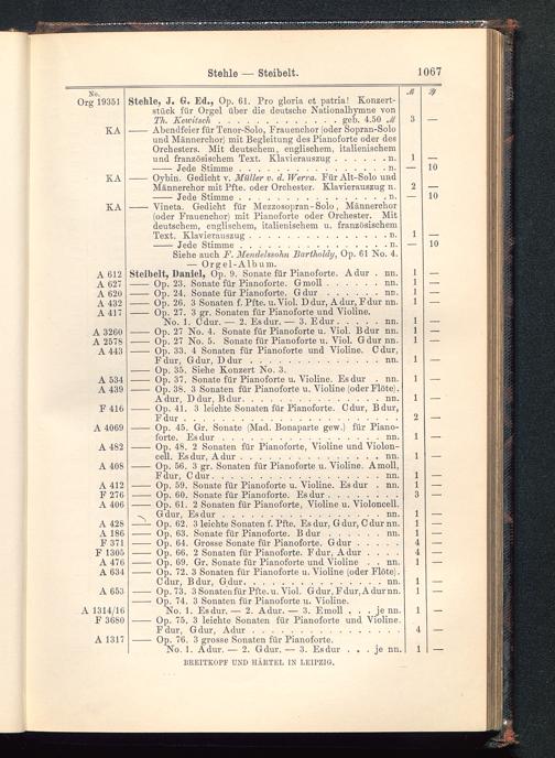 - Op. 73. 3 Sonaten für Pfte. u.Viol. Gdur, Fdur, Adur nn.