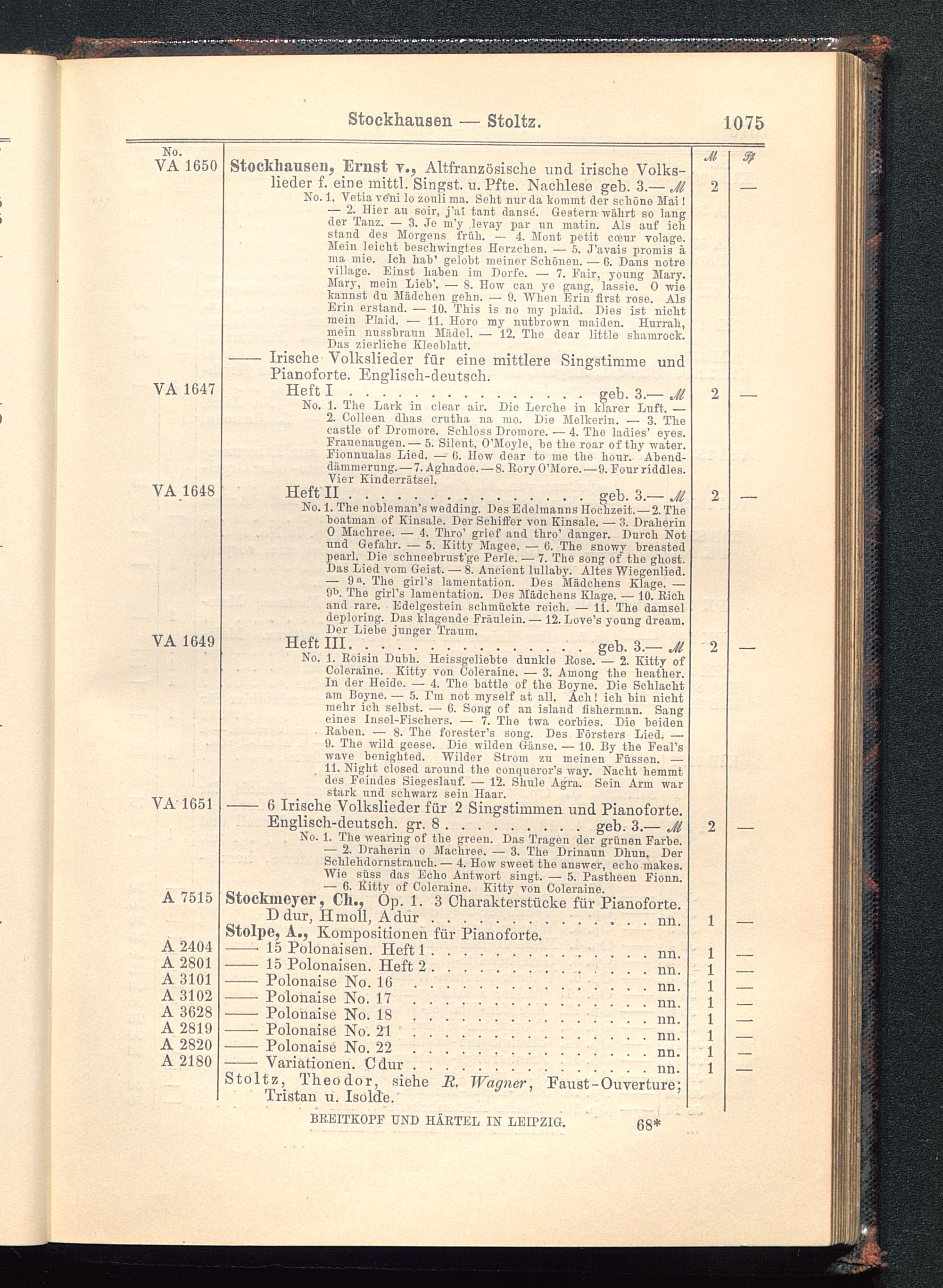 Stockhausen, Ernst v. ? Altfranzösische und irische Volks-lieder f. eine mittl. Sinkst, u. Pfte. Nachlese geh. 3.— MNo. 1, Vetia ve*ni lo zouli ma. Seht nur da kommt der schöne Mai!