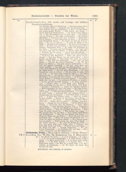 Stndzinski, Peter, s. Mazurken-Album. — Poln. Tänze.Stunden der Weihe für Harmonium von P. HassensteinNo. 1. Die Macht der Liebe. — 2. 0 du fröhliche, o du selige.