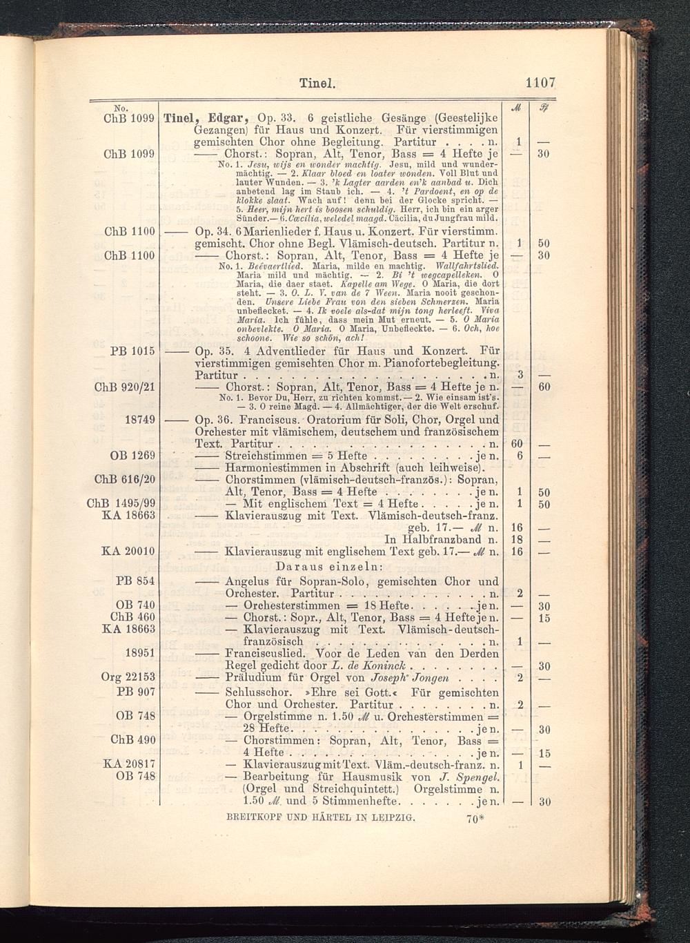 - Op. 36. Franciscus. Oratorium für Soli, Chor, Orgel und