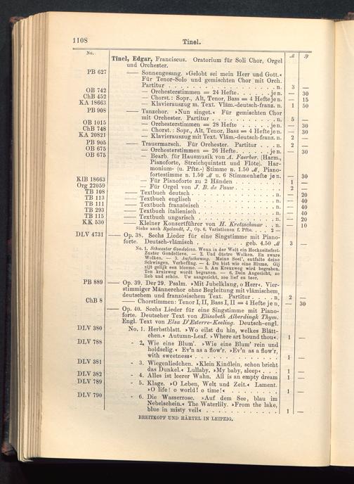- Op. 39. Der 29. Psalm. »Mit Jubelklang, o Herr». Vier-stimmiger Männerchor ohne Begleitung mit vlämischem,deutschem und französischem Text. Partitur . . . . n,