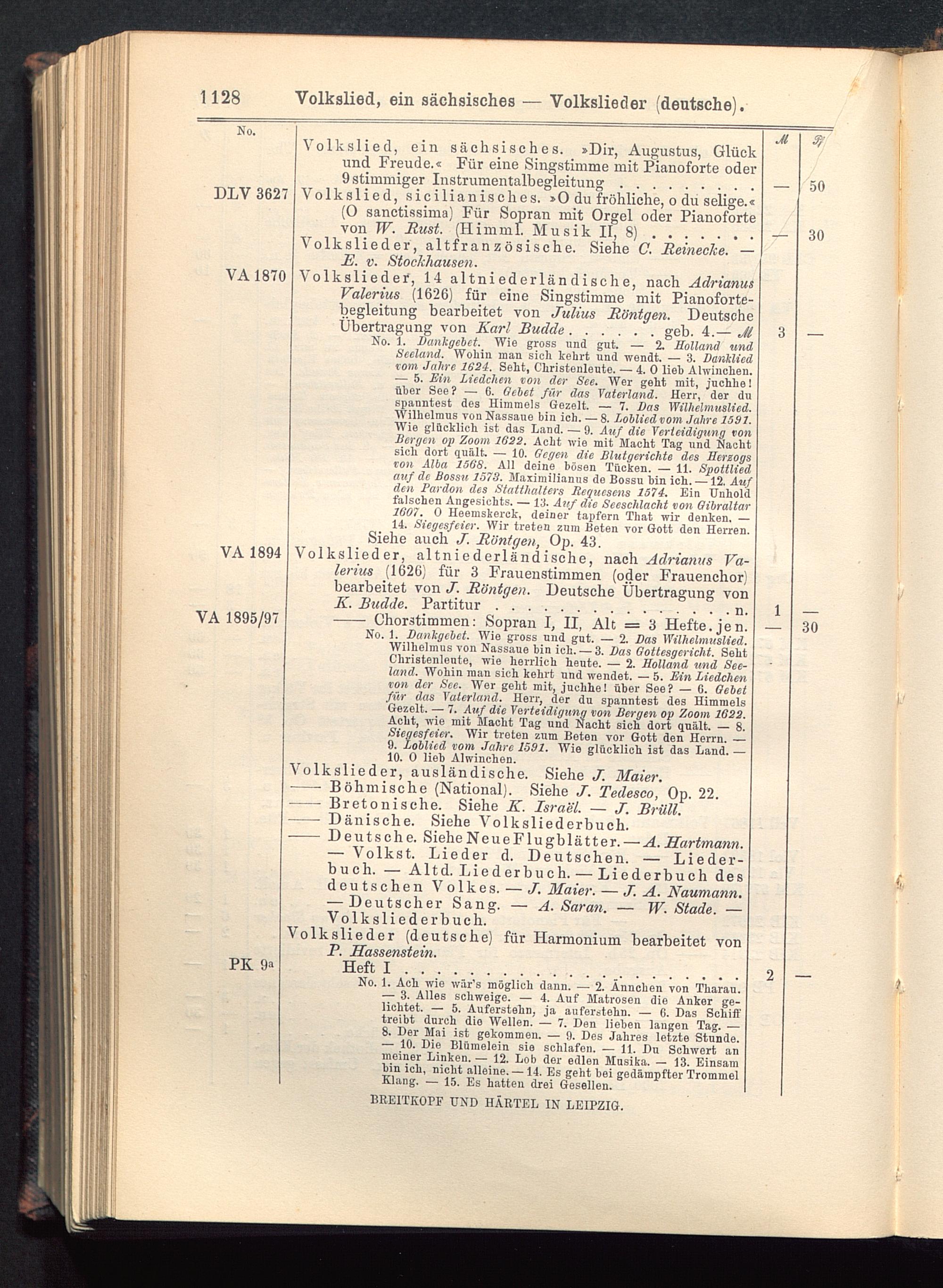 Siehe auch J. Röntgen, Op. 43.Volkslieder, altniederländische, nach Adrianus Va-lerius (1626; für 3 Frauenstimmen (oder Frauenchor;bearbeitet von J. Röntgen. Deutsche Übertragung von