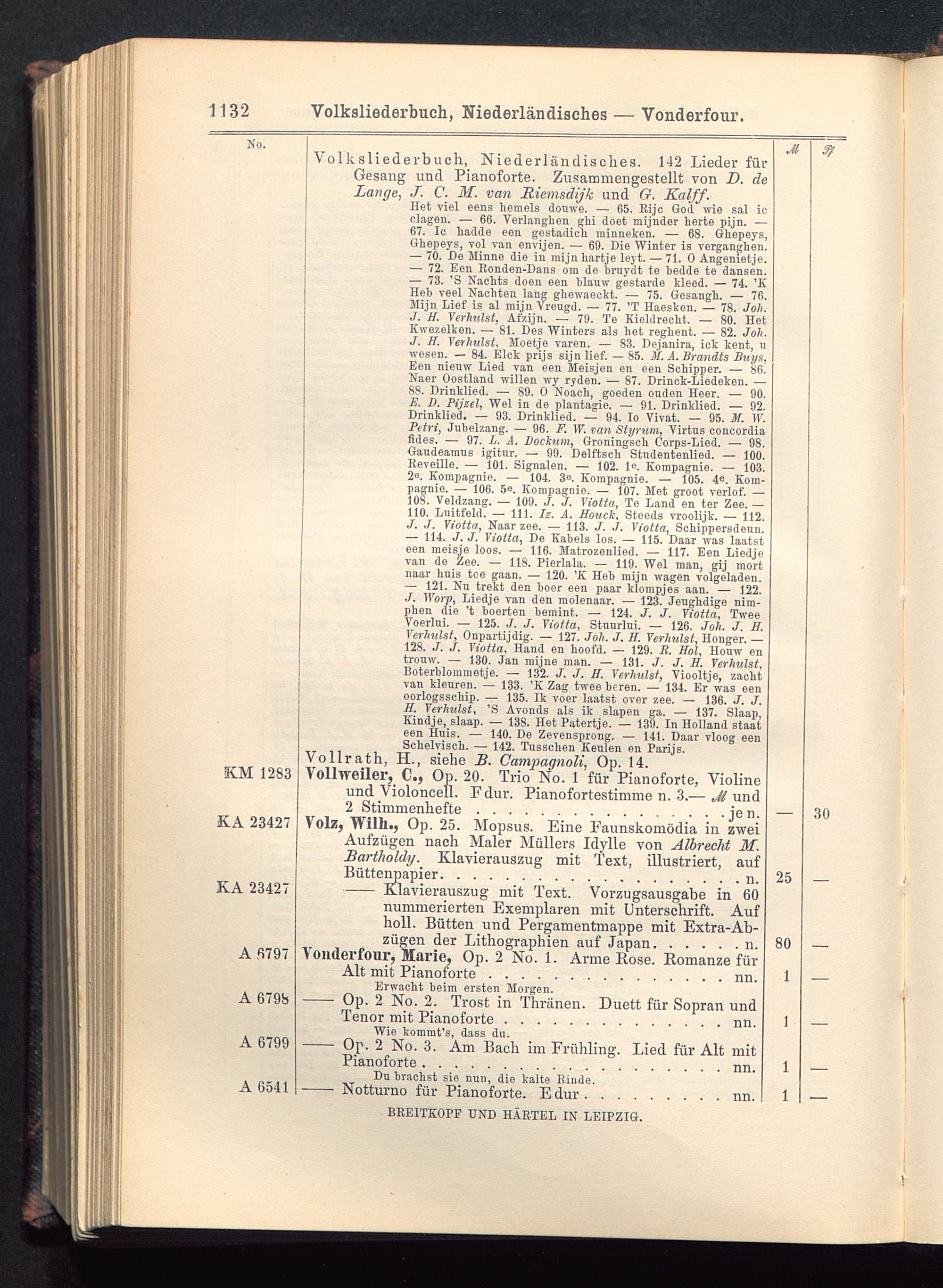 Vollrath, H., siehe B. Campagnoli, Op. 14.Vollweiler, C, Ou. 20. Trio No. 1 für Pianoforte, Violineund Violoncell. Fdur. Pianofortestimme n. 3.— Jl und