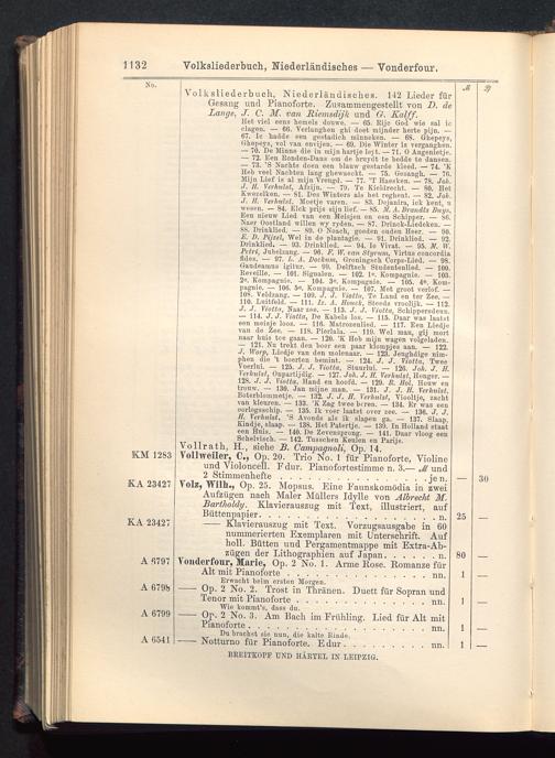 — 121. Nu trekt den boer een paar klompjes aan. — 122../. Worp, Liedje van den molenaar. — 123. Jenghdige nim-phen die 't boerten beinint. — 124. J. J. Viotta, TweeVoerlni. — 125. ./. ./. Viotta, Stuurlui. — 126. Joh. J. H.Verludst, Onpartijdig. — 127. Joh. J. H. Verludst, Honger. —128. J. J. Viotta, Hand en hoofd. — 129. R. Hol, Houw entrouw. — 130. Jan mijne man. — 131. J. J. H. Verludst,Boterblommotje. — 132. J. J. H. Verludst, Viooltje, zachtvan kleuren. — 133. 'K Zag twee brren. — 134. Er was eenoorlogsschip. — 135. 1k voer laatst over zee. — 136. J. J.II. Verludst, 'S Avonds als ik slapen ga. — 137. Slaap,Kindje, slaap. — 138. Het Patertje. — 139. In Holland Staateen Huis. — 140. De Zevensprong. — 141. Daar vloog eenSchelvisch. — 142. Tusschen Keulen en Parijs.
