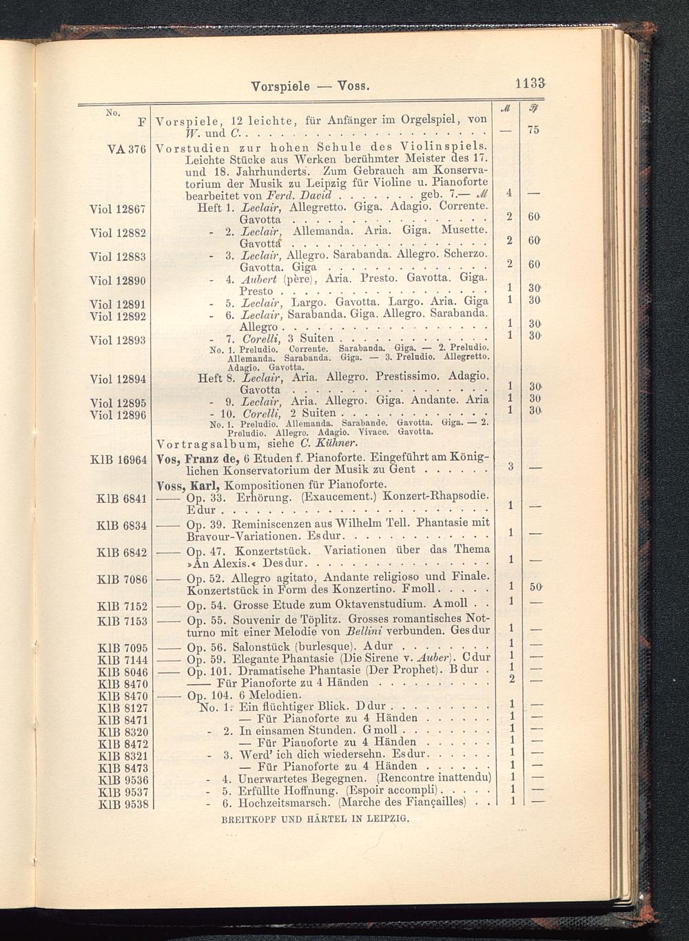 Vorstudien zur hohen Schule des V iolin spiels.Leichte Stücke aus Werken berühmter Meister des 17.und 18. Jahrhunderts. Zum Gebrauch am Konserva-torium der Musik zu Leipzig für Violine u. Pianoforte