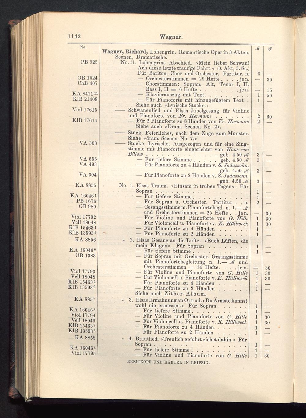 No. 1. Elsas Traum. »Einsam in trüben Tagen«. Für... Sopran ..................