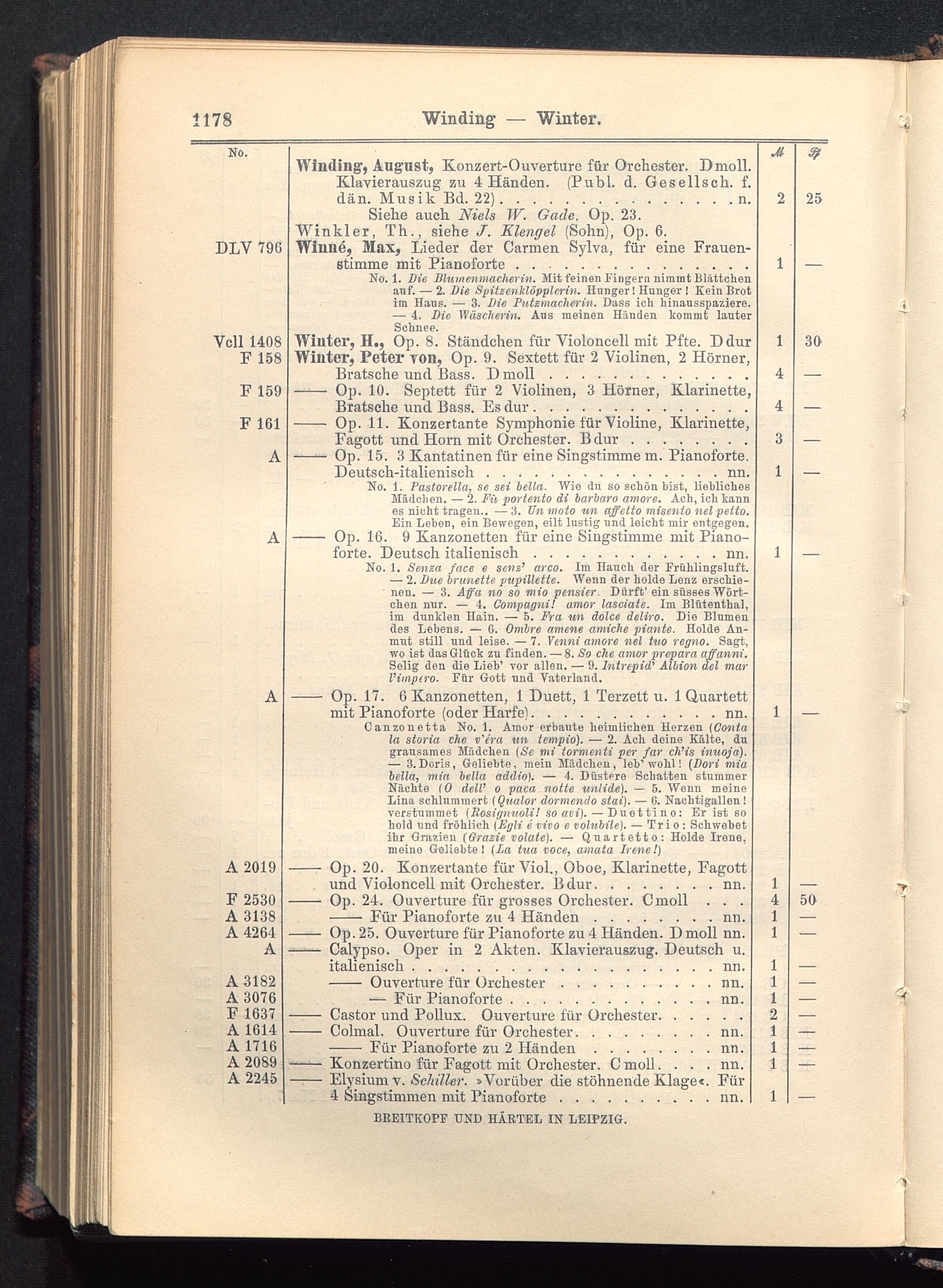 Winter, H., Op. 8. Ständchen für Violoncell mit Pfte. DdurWinter, Peter von, Op. 9. Sextett für 2 Violinen, 2 Hörner,