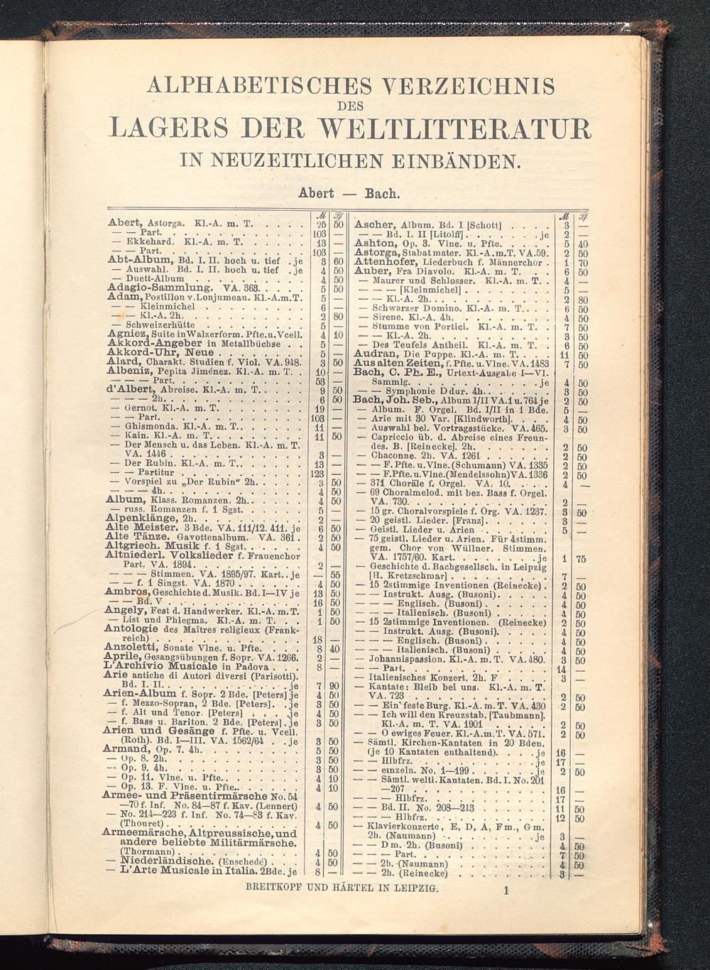 — Dea Teufels Antheil. Kl.-Ä. m. T. .Audraii, Die Puppe. Kl.-A. m. T. . . .Aus alten Zeiten, f. Pfte. u.Vlne. VA. 1483Bach, C. Ph. E., Urtext-Ausgabe I—vi.