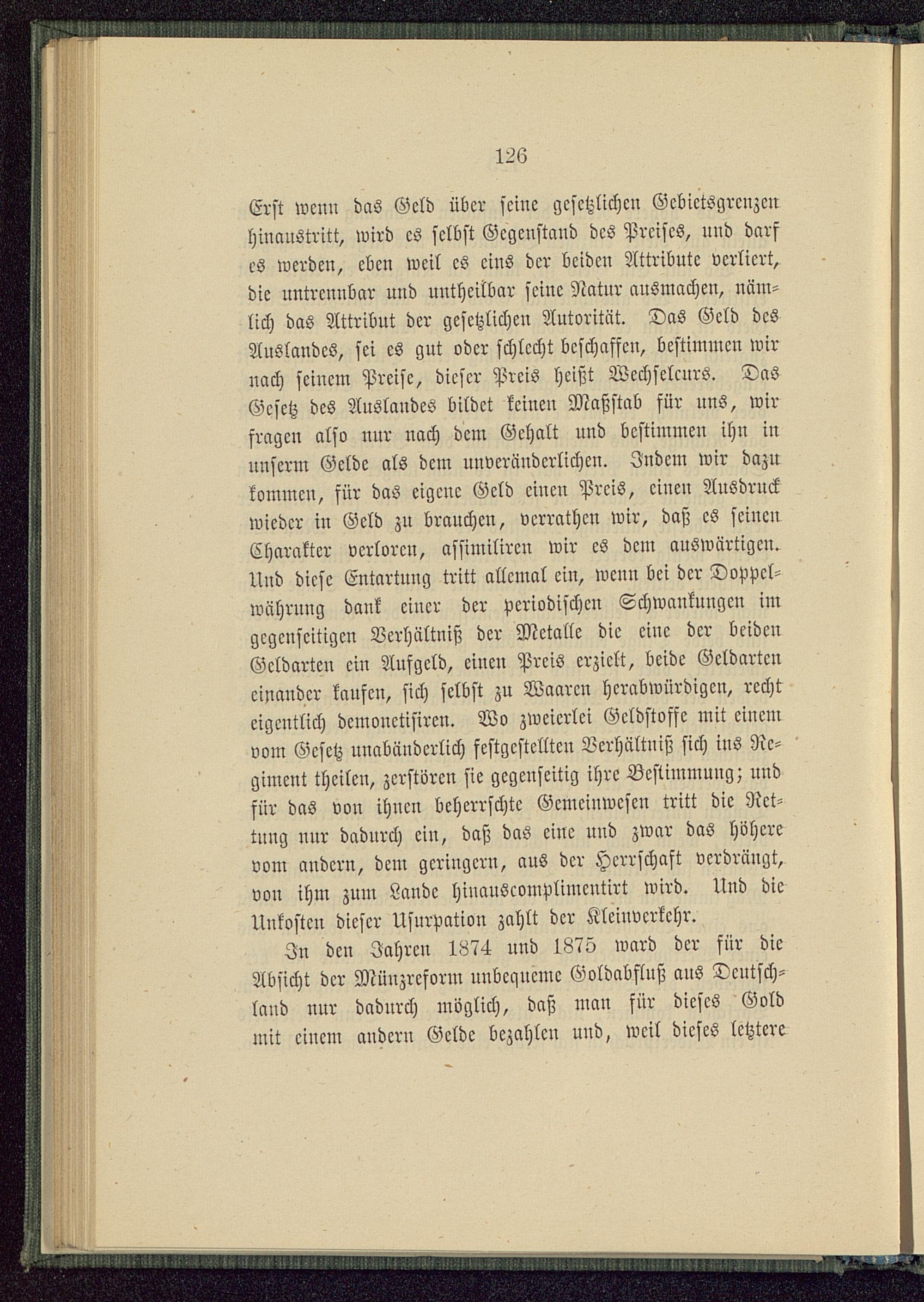 Erst wenn das Geld über seine gesetzlichen GcbictSgrcnzcnhinaustritt, wird es selbst Gegenstand des Preises, und darfes werden, eben weil es eins der beiden Attribute verliert,die untrennbar und nnthcilbar seine Natur ausmachen, näm-lich das Attribut der gesetzlichen Autorität. Das Geld desAuslandes, sei es gut oder schlecht beschaffen, bestimmen wirnach seinem Preise, dieser Preis heißt Wechselkurs. DasGesetz des Auslandes bildet keinen Maßstab für uns, wirfragen also nur uach dem Gehalt und bestimmen ihn inunserm Gelde als dem unveränderlichen. Indem wir dazukommen, für das eigene Geld einen Preis, einen Ausdruckwieder in Geld zu brauchen, verrathen wir, daß es seinenCharakter verloren, assimilircn wir es dem auswärtigen.Und diese Entartung tritt allemal ein, wenn bei der Doppcl-währung dank einer der periodischen Schwankungen imgegenseitigen Verhältniß der Metalle die eine der beidenGcldartcn ein Aufgeld, einen Preis erzielt, beide Geldartcneinander kaufcu, sich selbst zu Waaren herabwürdigen, rechteigentlich dcmonctisiren. Wo zweierlei Gcldstoffe mit einemvom Gesetz unabänderlich festgestellten Verhältniß sich ins Re-giment theilen, zerstören sie gegenseitig ihre Bestimmung; undfür das von ihnen beherrschte Gemeinwesen tritt die Ret-tung nur dadurch ein, daß das eine und zwar das höherevom andern, dem geringern, ans der Herrschaft verdrängt,von ihm zum Lande hinauöcomplimcntirt wird. Und dieUnkosten dieser Usurpatiou zahlt der Klcinvcrkchr.