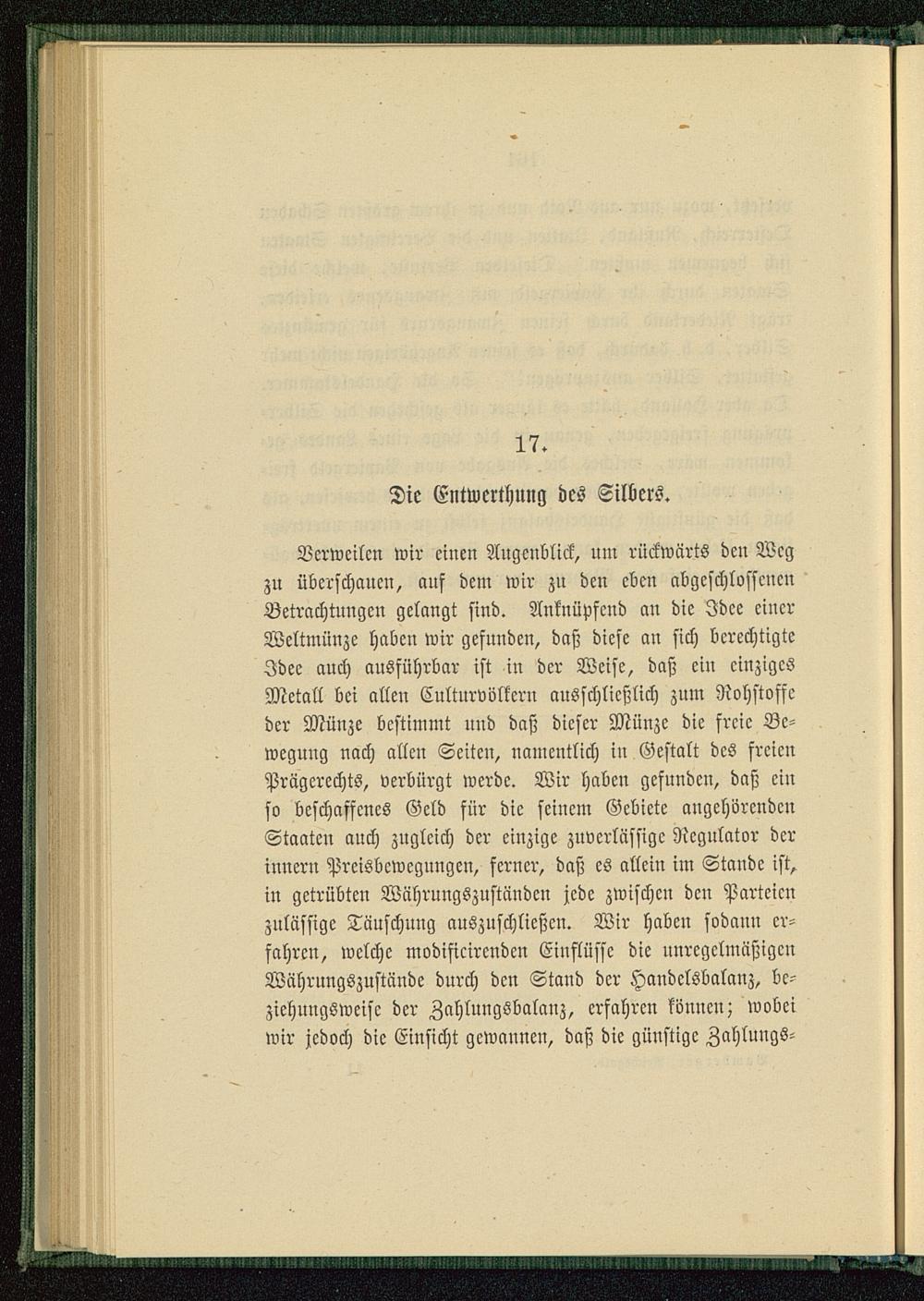 Verweilen wir einen Augenblick, um rückwärts den Wegzu überschauen, auf dem wir zn den eben abgeschlossenenBetrachtungen gelangt sind. Anknüpfend an die Idee einerWeltmünze haben wir gefuudeu, daß diese au sich berechtigteIdee auch ausführbar ist in der Weise, daß ein einzigesMetall bei allen Culturvölkern ausschließlich zum Rohstoffeder Münze bestimmt uud daß dieser Münze die freie Be-wegung nach allcu Seiten, namentlich in Gestalt des freienPrägcrechts, verbürgt werde. Wir haben gefunden, daß einso beschaffenes Geld für die seinem Gebiete angehörendenStaaten auch zugleich der einzige zuverlässige Regulator derinnern Preisbewegungen, ferner, daß es allein im Stande ist,in getrübten Währuugszustnudcn jede zwischen den Parteienzulässige Täuschung auszuschließen. Wir haben sodann er-fahren, welche modificircnden Einflüsse die unregelmäßigenWährungszustände durch den Stand der Handclsbalanz, be-ziehungsweise der Zahluugsbalauz, erfahren können; wobeiwir jedoch die Einsicht gewannen, daß die günstige Zahlungs-