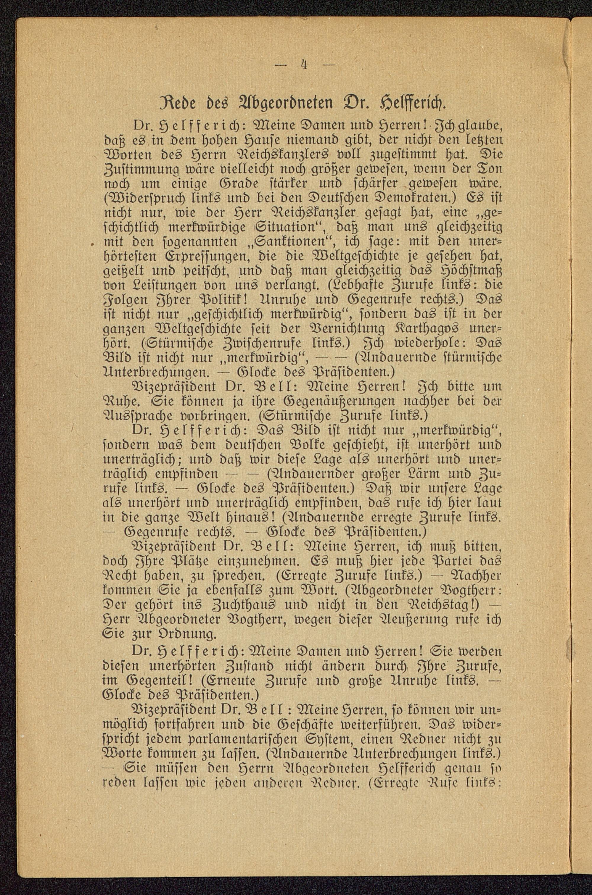 Or. H elffe ri ch: Meine Damen und Herren! Sie werdendiesen unerhörten Zustand nicht ändern durch Ihre Zurufe,im Gegenteil! (Erneute Zurufe und große Unruhe links. —Glocke des Präsidenten.)