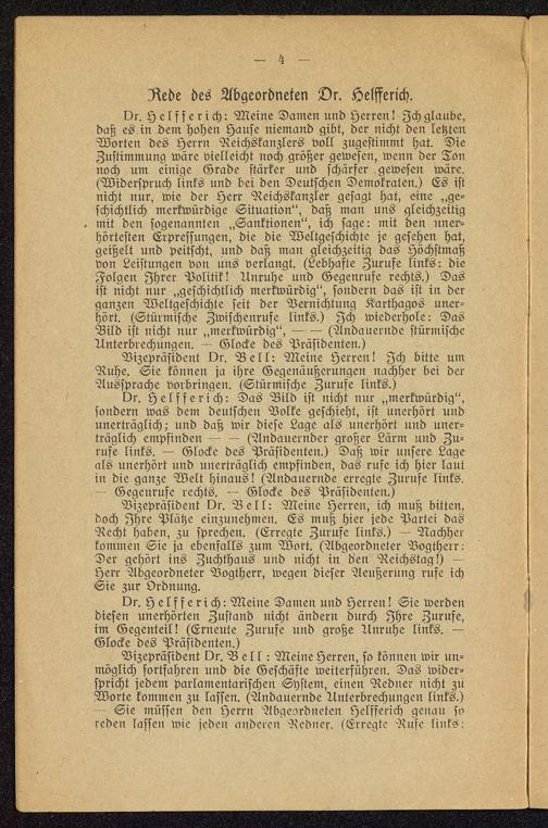 Vizepräsident Or. Bell: Meine Herren, so können wir un-möglich fortfahren und die Geschäfte weiterführen. Das wider-spricht jedem parlamentarischen System, einen Redner nicht zuWorte kommen zu lassen. (Andauernde Unterbrechungen links.)- Sie müsse« den Herrn Abgeordneten Helfferich genau soreden lassen wie jeden andren Redner. (Erregte Rufe MN"